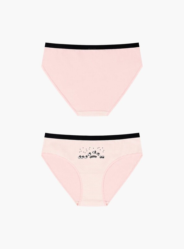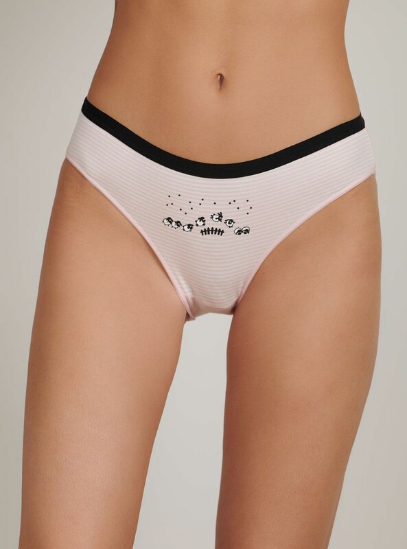 Женские трусы от торговой марки Индефини. Трусы-слипы из хлопка, розового цвета, с принтом, в полоску спереди, на мягкой резинке, средней посадки. Состав: 95% хлопок 5% эластан