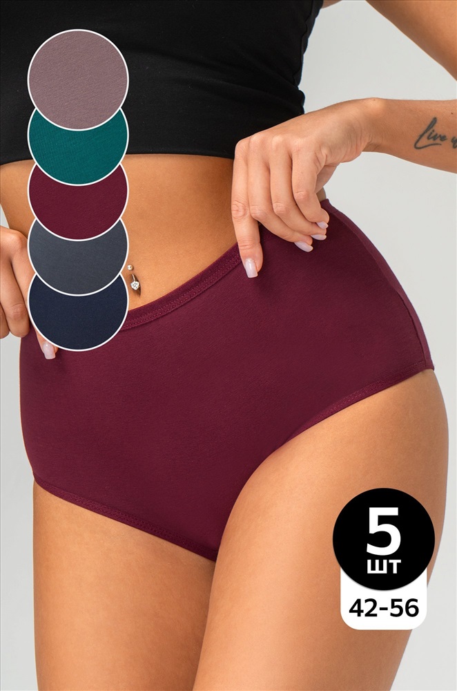 Идеальны на каждый день! Набор женских трусов слипов из 5 штук выполнен из мягкого дышащего хлопка. Эластичная резинка, базовые цвета и комфортная высокая посадка – эти трусики для женщин идеальны для любой ситуации!