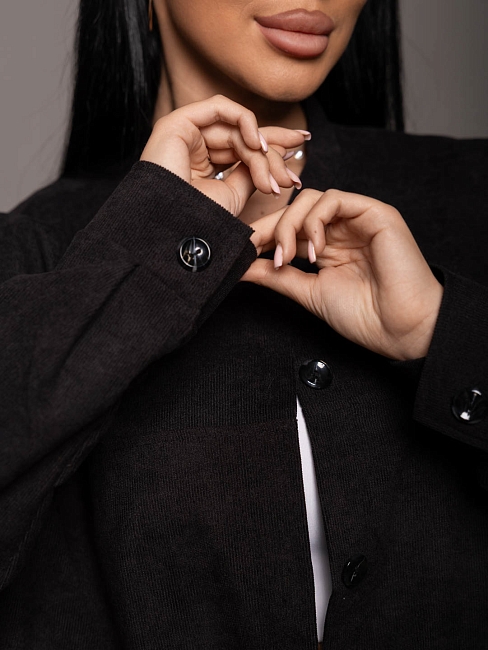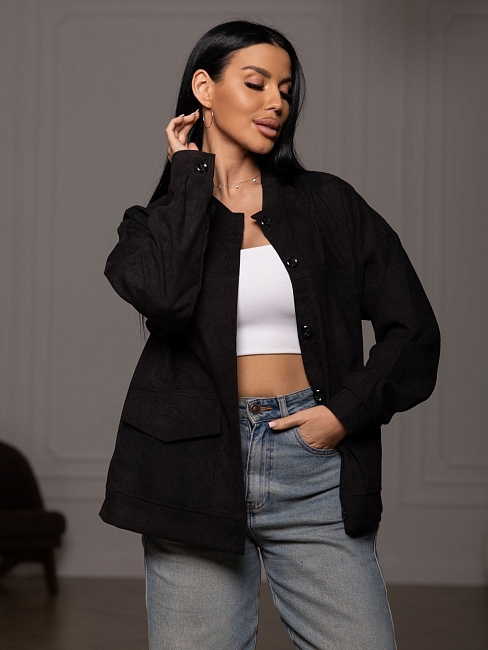 Материал: Вельвет; Состав: 92% полиэстер, 8% нейлон; Застежка: Пуговицы; Длина рукава: Длинный рукав; Размерный ряд: 48-58; Цвет: Черный; Тип рисунка: Однотонный