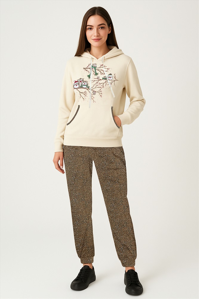 Костюм с брюками и кофтой. Удобные брюки и стильная кофта с капюшоном полуприлегающего кроя создают гармоничный образ, который подойдёт для дома, в дороге или прогулок. Качественные материалы и лаконичный дизайн подчеркнут вашу женственность и обеспечат уверенность в каждом движении. Идеальный выбор для современной женщины!