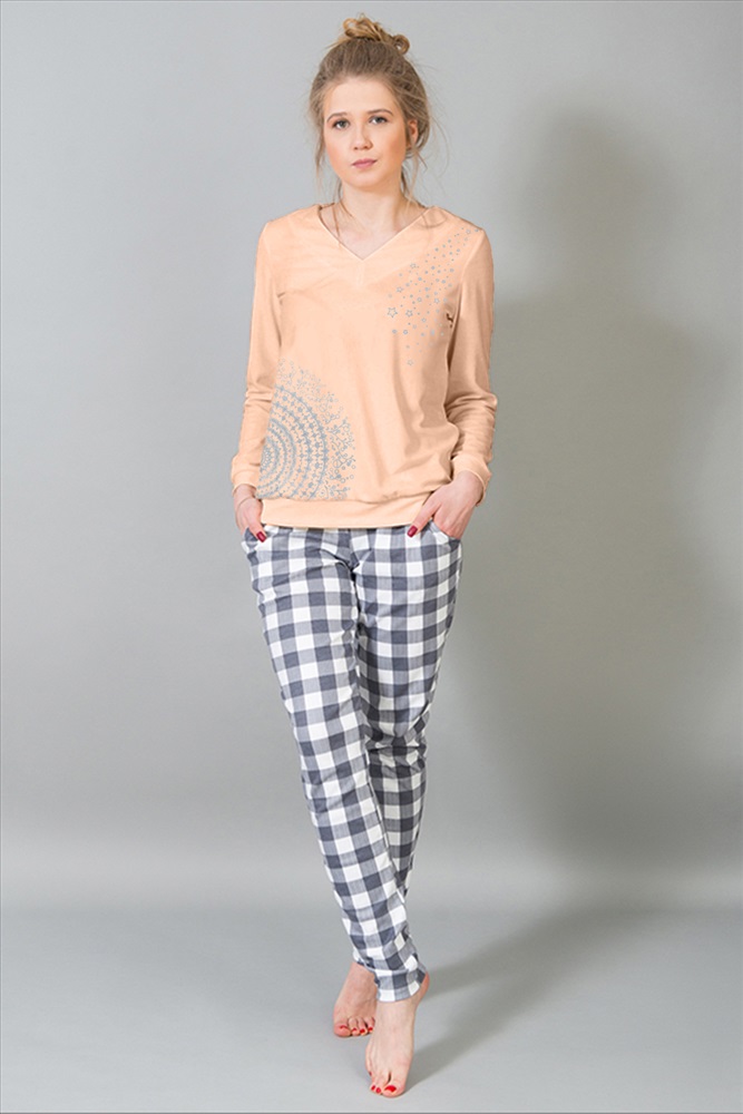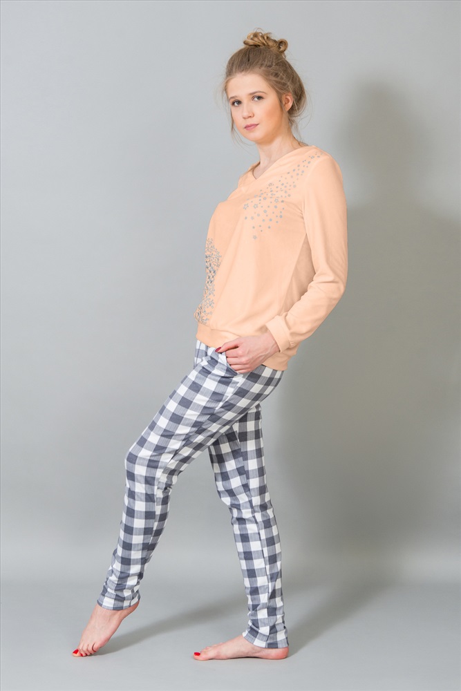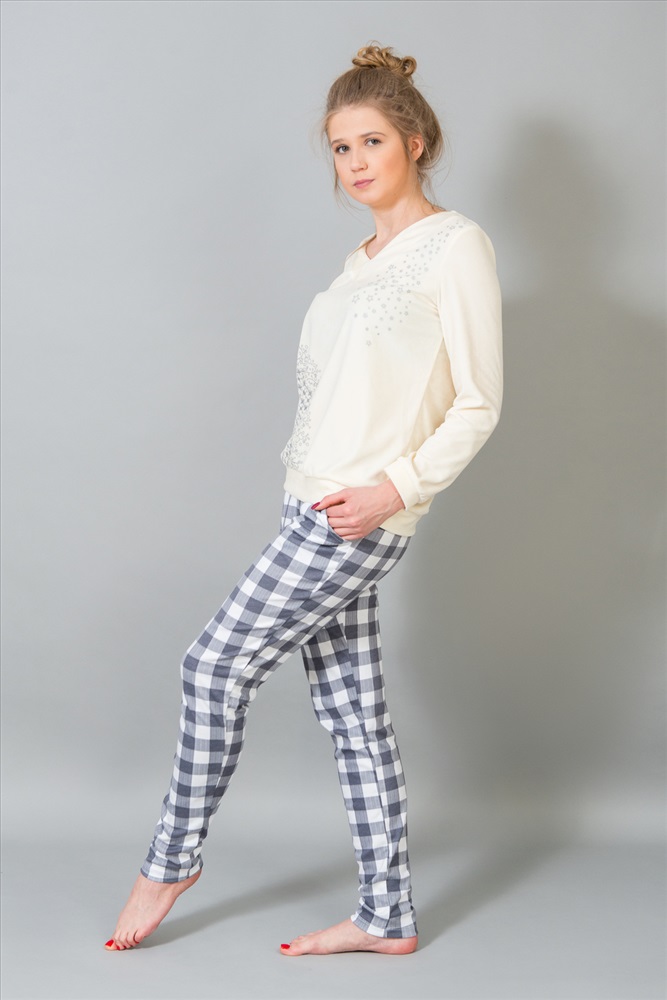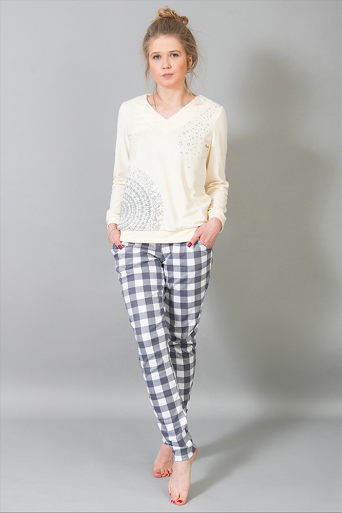 Состав: 60%хлопок 40%полиэстер Модель: Женский домашний костюм с брюками и кофтой 184 Тип товара: костюм с брюками Материал: кулирка | кулирка Бренд: NINEL Карман: боковые Назначение: для дома Особенности: на резинке Отделка: с карманами | с манжетами | с печатью Посадка: средняя посадка Рисунок: клетка | узоры Рукав: длинный рукав Сезонность: лето | осень | весна | зима Силуэт: свободный Стиль: домашний Воротник: без воротника Застежка: без застежки Костюм с брюками и кофтой. Удобные брюки и стильная кофта полуприлегающего кроя создают гармоничный образ, который подойдёт для дома, в дороге или прогулок. Качественные материалы и лаконичный дизайн подчеркнут вашу женственность и обеспечат уверенность в каждом движении. Идеальный выбор для современной женщины! Таблица размеров и весакофта