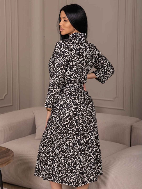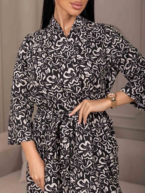 Материал: Кулирка; Состав: 100% хлопок; Плотность: 145 гр/м2; Застежка: Пояс; Длина рукава: 3/4 рукав; Размерный ряд: 48-62; Цвет: Черный; Тип рисунка: Узоры