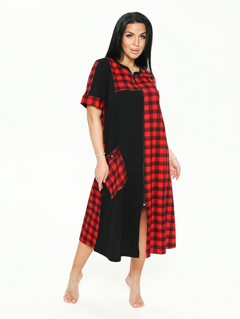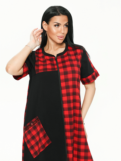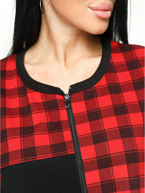 Материал: Кулирка; Состав: 100% хлопок; Застежка: Молния; Длина рукава: Короткий рукав; Размерный ряд: 50-68; Цвет: Красный; Тип рисунка: Клетка