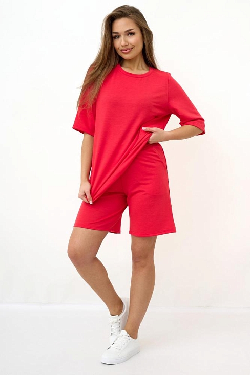 Модный однотонный костюм Омега – тренд этого лета, стильный и красивый комплект для отдыха и прогулок. Состоит из шорт с высокой посадкой и свободной футболки. Модный вариант для девушек разного возраста и фигуры. Красиво выглядит и прекрасно дополняет летний образ. Легко комбинировать с любой одеждой и носить можно с разной удобной обувью.