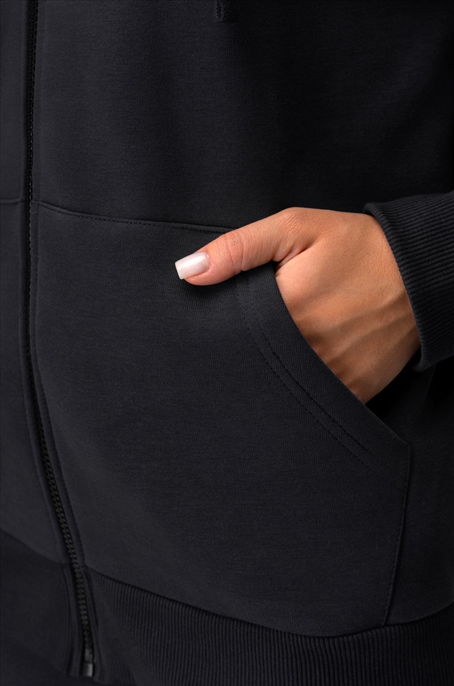 Объемный капюшон, карман-кенгуру и эластичные манжеты защитят от прохлады и ветра. Зип худи с удобной застежкой на молнию позволяет быстро его надевать и снимать при необходимости. Джоггеры с высокой посадкой не стесняют движения даже во время активных занятий. Спортивки с удобными карманами по бокам, эластичный пояс регулируется шнурком.