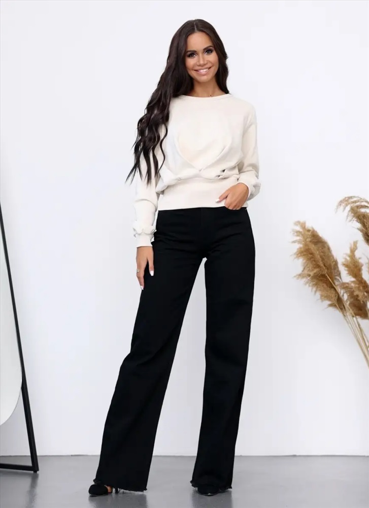 Кофта с длинным рукавом в свободном, оверсайз стиле. Эластичные манжеты, пояс. Круглый вырез горловины. Модная толстовка без рисунка.