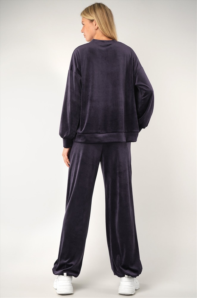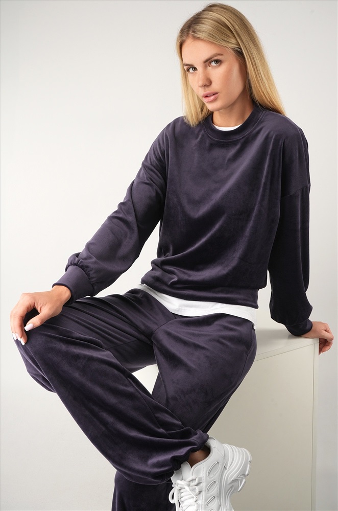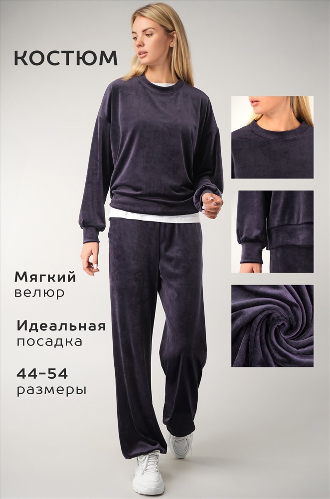 Повседневный велюровый костюм с брюками имеет свободный прямой крой и удобен для дома и прогулок. Бархатный костюм подойдет для путешествий и домашнего уюта. Фиолетовый костюм идеален для осенних и весенних образов.