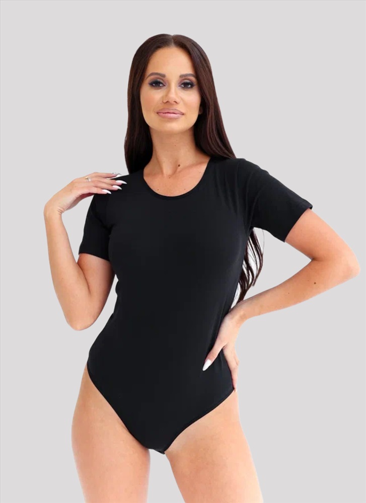 Женское боди Kota черного цвета с коротким рукавом. Застежка на крючках сконструирована таким образом, чтобы Вы не чувствовали ее во время носки. Боди изготовлено из 93% хлопка и 7% эластана.