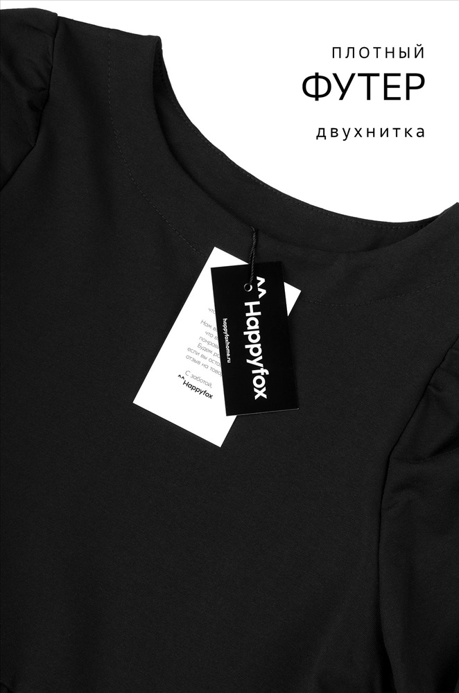 Производитель: Happyfox; Бренд: Happyfox; Страна: Россия; Состав: 74% хлопок, 21% полиэстер, 5% лайкра; Материал: Футер двухнитка; Плотность ткани: 240 г/м2; Цвет: черный