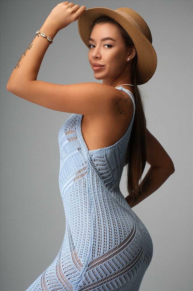 Пляжная туника нежно-голубого цвета идеально подойдет для отдыха на побережье. Ее ажурная фактура подчеркивает естественную красоту женщины и привлекает восхищенные взгляды.