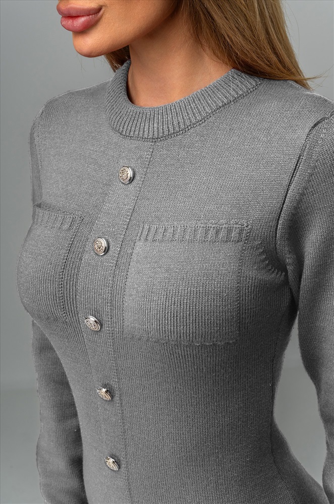 Мягкая пряжа с вискозой и акрилом в составе приятна к телу и бережно согревает. Нарядное серое платье идеально на каждый день. Теплое вязаное платье мини для женщин — прекрасный вариант на осень и зиму.