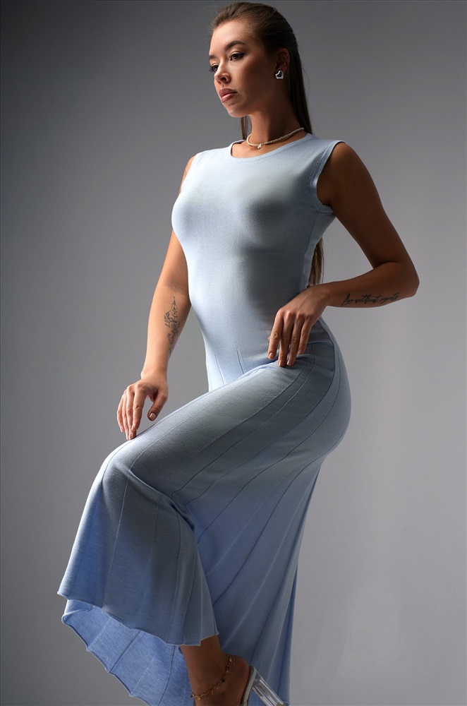 Однотонное голубое платье — отличный выбор для женщин, которые ценят стиль и комфорт. Обтягивающее платье идеально подойдет для праздничных мероприятий и повседневных встреч. Размерный ряд позволяет подобрать идеальную посадку по фигуре и почувствовать себя настоящей королевой old money (олд мани) эстетики.
