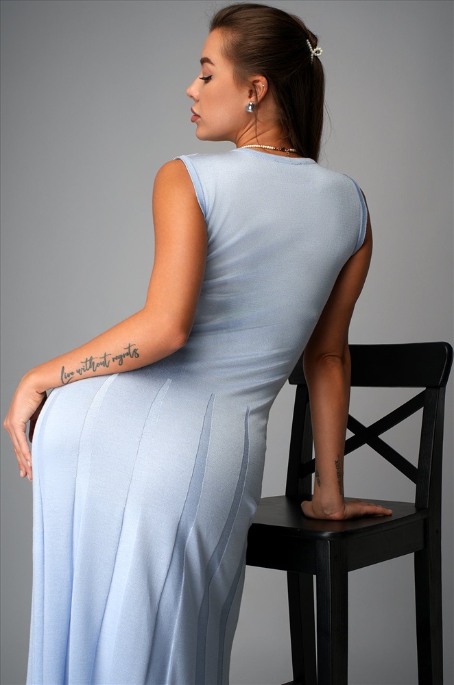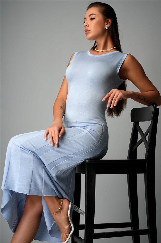 Когда хочется выглядеть безупречно и легко — на помощь приходит вязаное платье миди в небесно-голубом оттенке! Длинное женское платье сочетает в себе всё, что нужно для настоящего наслаждения во время вечернего выхода. Нарядное и невероятно женственное платье создано, чтобы ловить восхищенные взгляды и собирать комплименты.