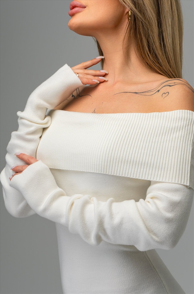 Почувствуйте себя королевой вечера! Великолепное женское платье миди подчеркивает каждую линию фигуры, создавая элегантный и нарядный образ. Трикотажное платье молочного цвета станет вашим любимым выбором для праздничных мероприятий, когда вы хотите по-настоящему блистать.