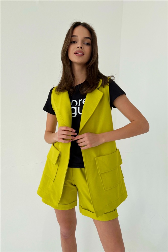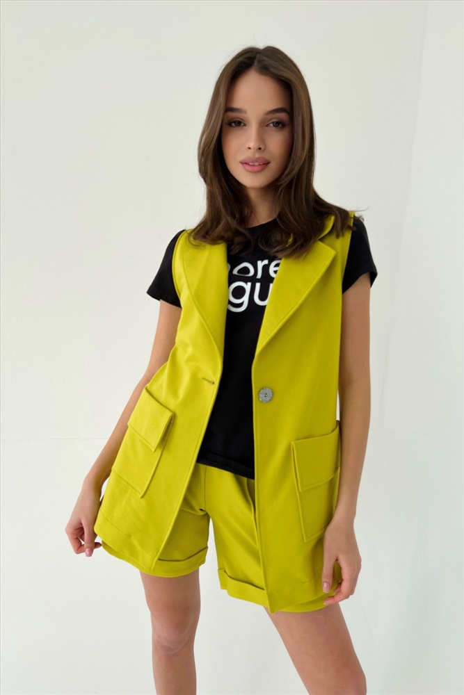 Состав: хлопок 72%, ПЭ 20%, эластан 8% Модель: Жилет 8191 Тип товара: жилет Материал: футер с лайкрой 2-х нитка | футер с лайкрой 2-х нитка Бренд: Натали Суслова Длина: средняя длина Карман: накладные Отделка: с карманами Рисунок: однотонные Рукав: без рукава Сезонность: лето | осень | весна | зима Силуэт: полуприлегающий Стиль: молодежный | повседневный Воротник: воротник с лацканами Застежка: пуговицы Жилет полуприлегающего силуэта, длиной до середины бедра, с английским воротником. В нижней части полочки расположены накладные карманы с клапаном. Таблица размеров и веса