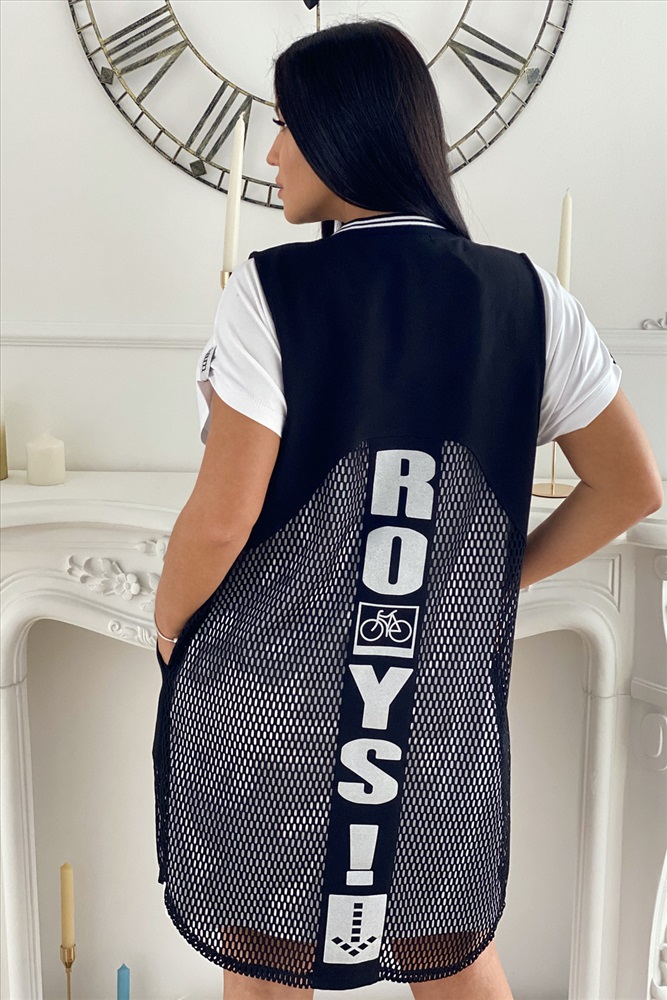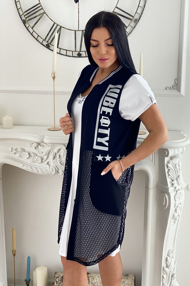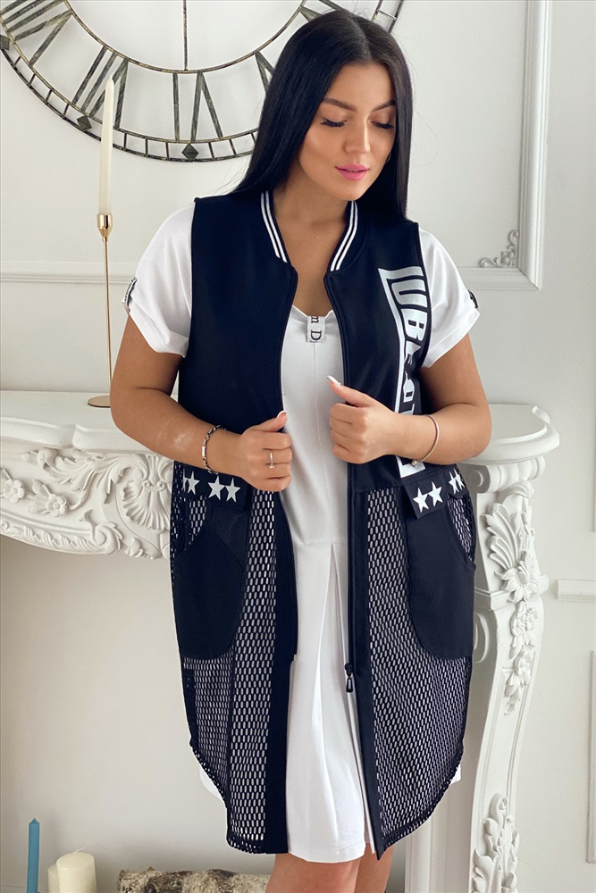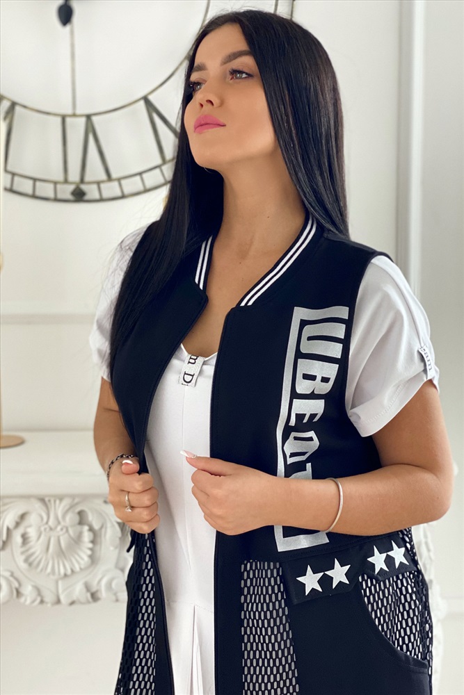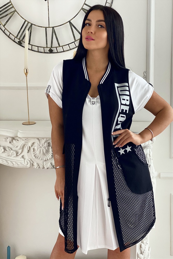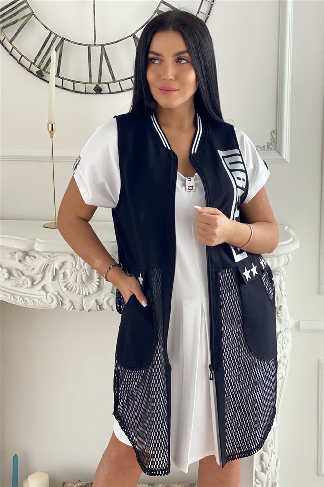 Состав: хлопок 72%, ПЭ 20%, эластан 8%; 100% ПЭ Модель: Жилет 9054 Тип товара: жилет Материал: футер с лайкрой 2-х нитка | сетка | футер с лайкрой 2-х нитка | сетка Бренд: Натали Суслова Длина: длинный Карман: накладные Отделка: с карманами | с печатью | с сеткой Рейтинг: Рейтинг 4 и выше Рукав: без рукава Сезонность: лето | осень | весна Силуэт: прямой Стиль: повседневный Воротник: воротник стойка Застежка: молния Жилет женский прямого силуэта. Застежка на тесьму-молнию. Нижняя часть полочки и спинки из крупной сетки, на полочке два накладных кармана с клапанами. На верхней части полочки, клапанах и центральной части спинки принт в виде букв. Таблица размеров и веса