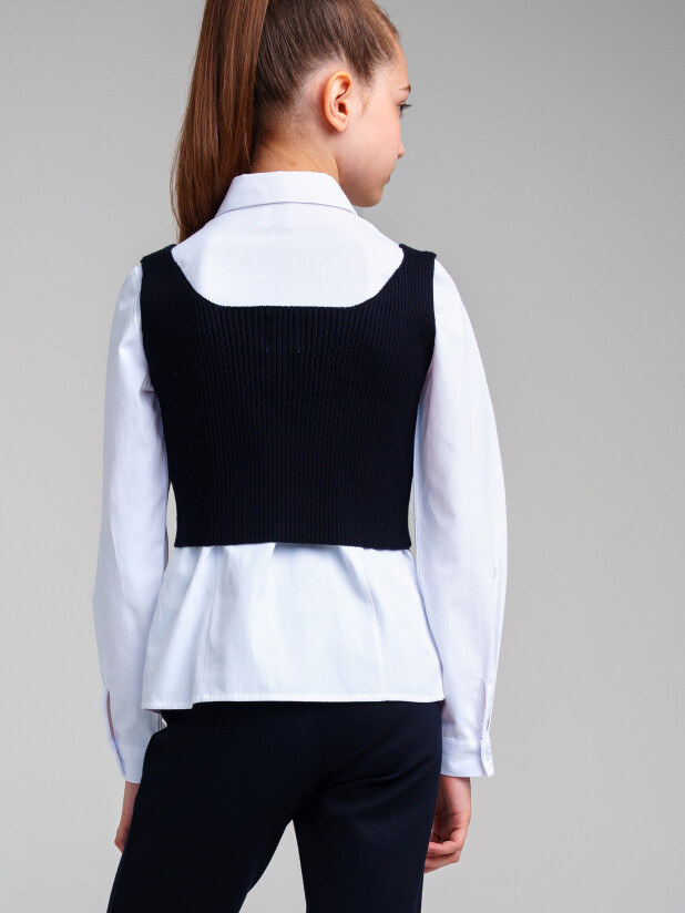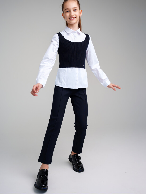 Модный темно-синий вязаный жилет в школу для девочки от PlayToday — стиль, комфорт и универсальность для каждого учебного дня!