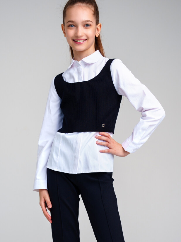 Этот синий подростковый жилет для школы мягко прилегает к фигуре, не стесняет движений и позволяет создавать свежие современные образы. Благодаря укороченному крою и универсальному цвету, нарядный детский жилет для девочек легко сочетается с рубашками, футболками, поло, юбками и брюками из коллекции PlayToday.