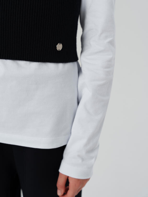 Строгий укороченный жилет легко стирается, быстро сохнет и не требует сложного ухода.