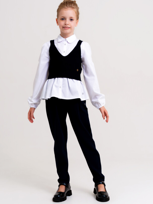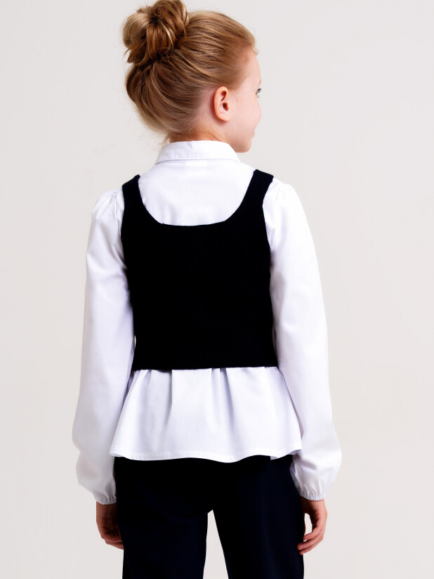 Укороченный синий школьный жилет для девочки подростка. Жилет выполнен из вязаного трикотажа с высоким содержанием вискозы, что обеспечивает максимальный комфорт для школьницы во время занятий. Жилетка в школу выглядит стильно, благодаря лаконичному дизайну. Рубашка, футболка или поло + жилет для школьницы составит красивый элегантный комплект для школы.