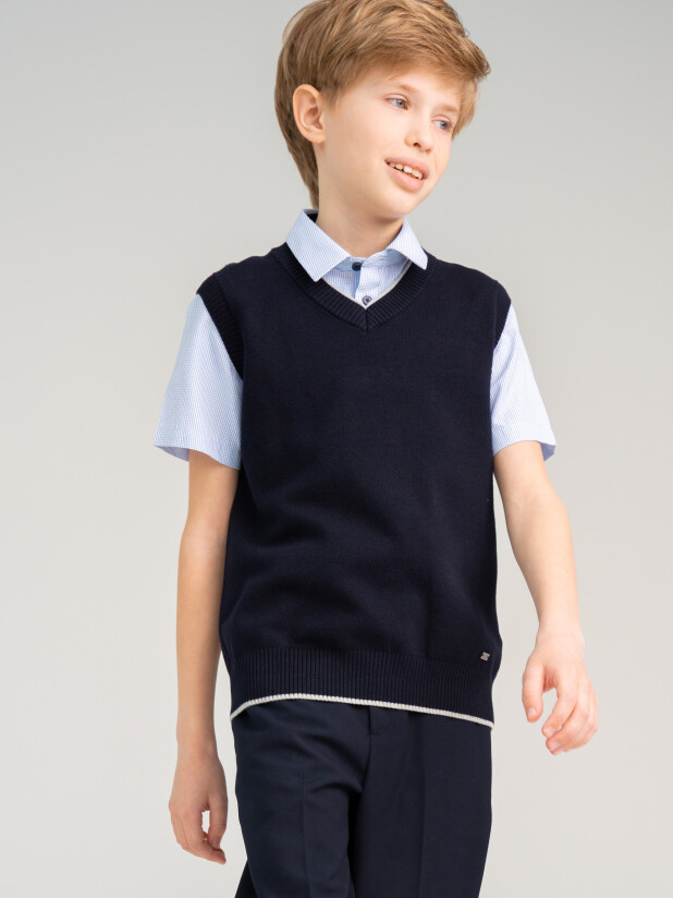 Совет по стилю: сочетайте вязаный черный жилет для школьников с белой рубашкой и строгими брюками от PlayToday для классического образа или добавьте футболку и джинсы для более расслабленного варианта.