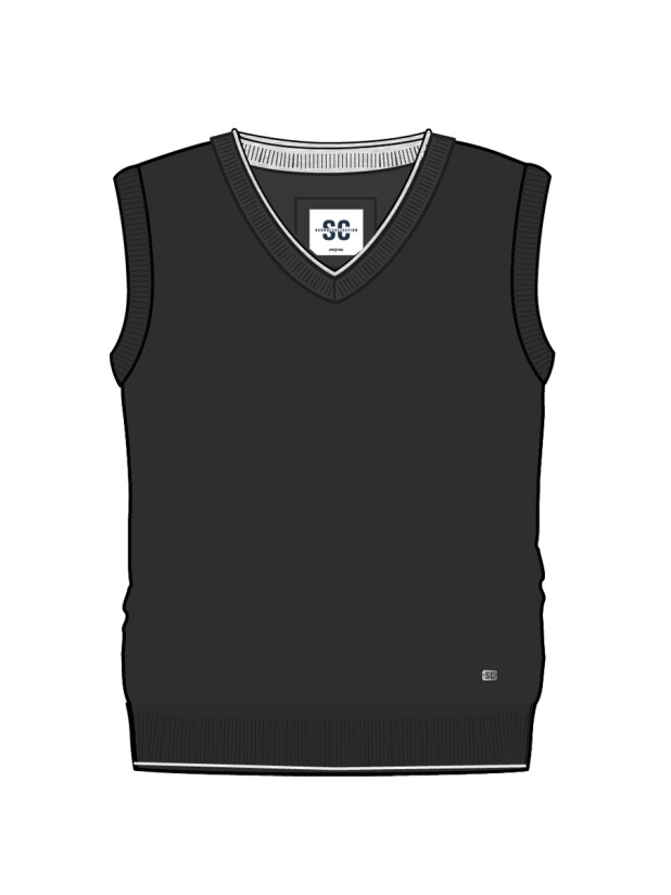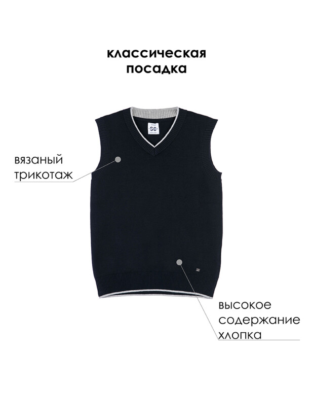 Лаконичный чёрный цвет и простой дизайн делают классический трикотажный детский жилет универсальным для школьного дресс-кода. Материал приятен к телу, хорошо держит форму и остаётся аккуратным даже после многочисленных стирок.