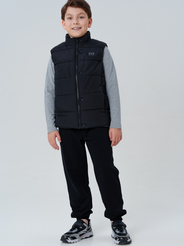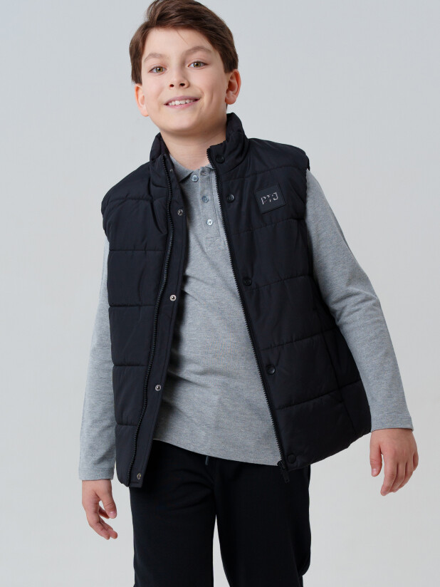 Демисезонный школьный черный жилет для мальчика подростка от PlayToday — практичный и стильный выбор для школы и активных прогулок в прохладную погоду. Такой утепленный подростковый жилет на осень надёжно защищает от ветра и легкой влаги благодаря современным непромокаемым материалам, а тёплая подкладка из таффеты обеспечивает уют и комфорт в течение всего дня.
