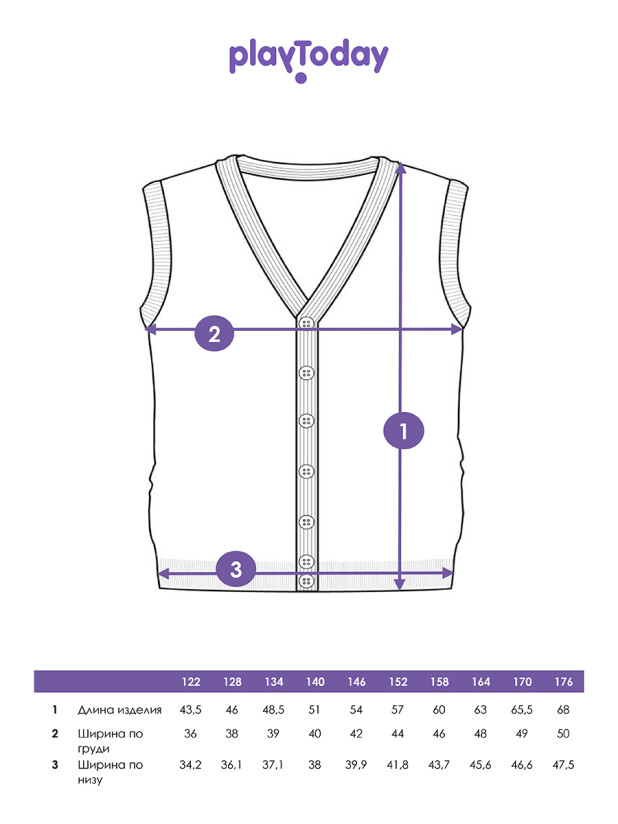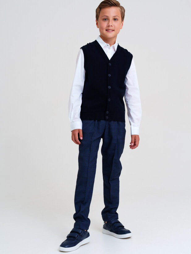 Совет по стилю: сочетайте стильный темно-синий жилет для школьников с белой рубашкой и классическими брюками для строгого образа или добавьте футболку и джинсы от PlayToday для более повседневного варианта.