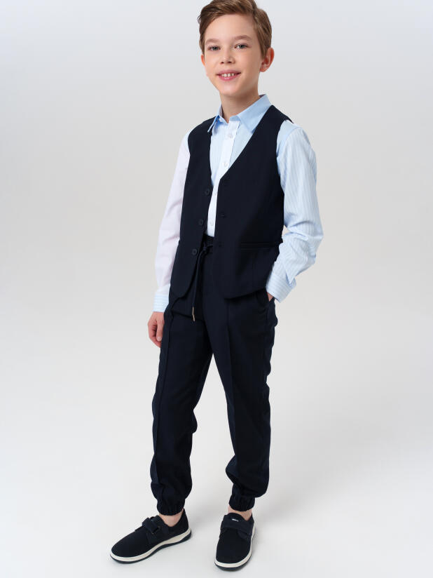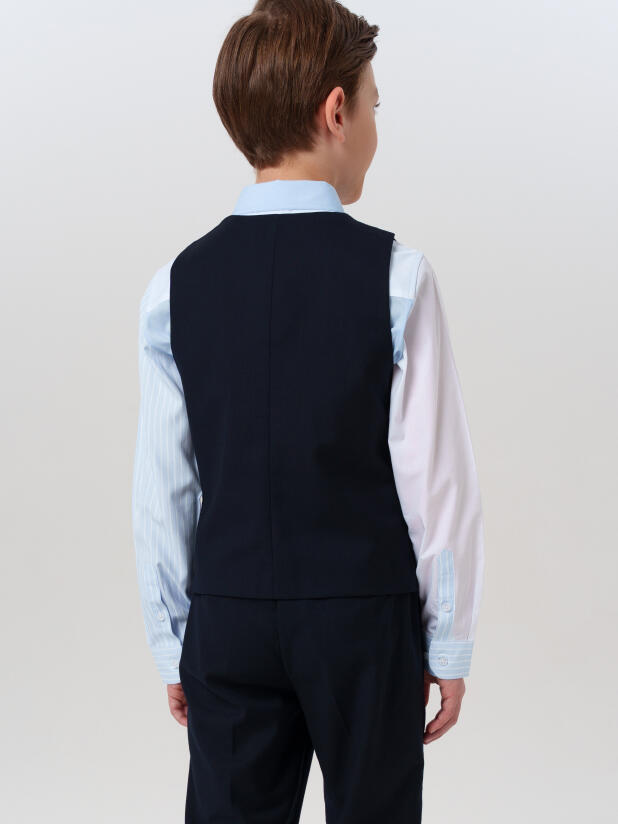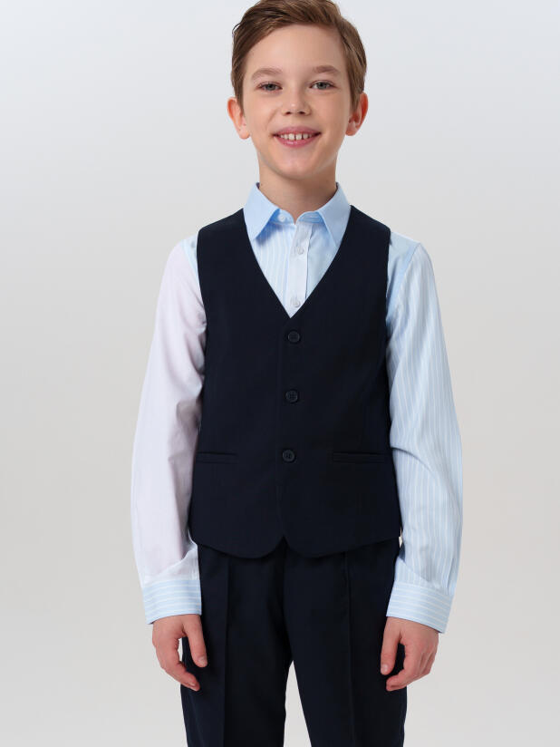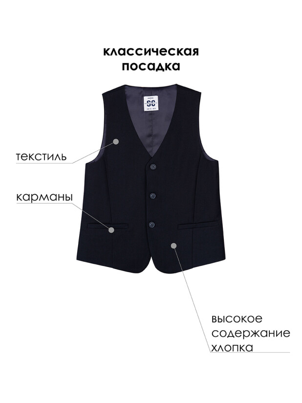 О товаре Классический темно-синий школьный жилет на подкладке для мальчика подростка от PlayToday — стильное и практичное решение для школы, созданное для максимального уюта на каждый день. Современный состав ткани и продуманная конструкция позволяют ребёнку чувствовать себя комфортно в течение всего учебного дня. Преимущества модели: + текстиль с высоким содержанием вискозы и полиэстера + мягкая подкладка + прямой крой + функциональные боковые карманы + универсальный темно-синий цвет + лёгкий уход Этот синий подростковый жилет для школы отлично садится по фигуре, не стесняет движений и подходит для любого школьного образа. Сложный состав ткани обеспечивает приятные тактильные ощущения и уют даже при длительном ношении, а мягкая подкладка добавляет комфорта в любое время года. Функциональные боковые карманы — удобное решение для хранения мелочей. Лаконичный дизайн и насыщенный синий цвет делают такой детский школьный жилет для мальчиков универсальным для любого школьного гардероба, а прямой крой позволяет сочетать его с рубашкой, футболкой или поло. Совет по стилю: комбинируйте этот классический темно-синий жилет для подростков с белой рубашкой и строгими брюками от PlayToday для формального школьного образа или добавьте футболку и кеды для более расслабленного комплекта. Нарядный текстильный жилет легко стирается, быстро сохнет и сохраняет форму даже после множества стирок. Модель представлена в размерах на рост 128–164 см — отличный выбор для мальчиков и подростков от 8 до 14 лет. Модный синий жилет на подкладке в школу для мальчика от PlayToday — это сочетание уюта, стиля и практичности для каждого школьного дня! СОСТАВ 63% полиэстер, 35% вискоза, 2% эластан Уход Максимальная температура стирки 30°С. Мягкий режим. Не отбеливать. Утюжить при температуре не более 150°С. Профессиональная сухая чистка. Не применять сушку в барабане. Стирать с вещами такой же окраски. Стирать вывернутым наизнанку. Предварительная стирка обязательна. Утюжить с изнаночной стороны. Бренд PlayToday АРТИКУЛ 22417054 Цвет Темно-синий Возрастная категория Школьники, Подростки Пол Мужской Сезон Демисезон Год коллекции 2025 Страна бренда Германия Страна производства Китай Возраст 8 лет, 9 лет, 10 лет, 11 лет, 12 лет, 13 лет, 14 лет, 15 лет, 16 лет Маркировка Товары легкой промышленности и одежда Миниколлекция School