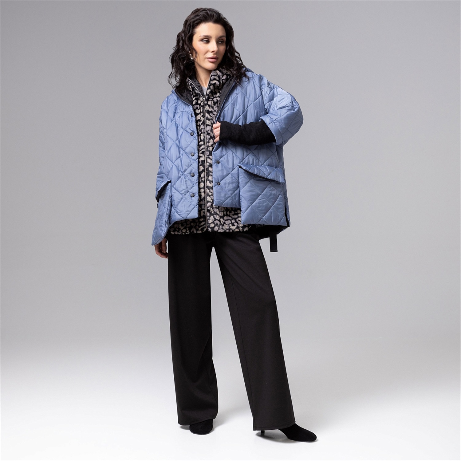 ТН ВЭД: 6110909000; Состав: «Экомех» шиншила, стёганный подклад (100% п/э); Плотность ткани: Плотная; Тип ткани: Текстиль, трикотаж; Вид застежки: Молния; Декоративные элементы: Другое; Дополнительный цвет ткани: Черный; Карманы: Нет; Основной цвет ткани: Серый; Отрезная талия: Нет; Подклад: Есть; Резинка по талии: Нет; Рисунок/раппорт: Нет, все изделия идентичны; Сезон: Зима; Силуэт: Свободный; Стиль: Повседневный