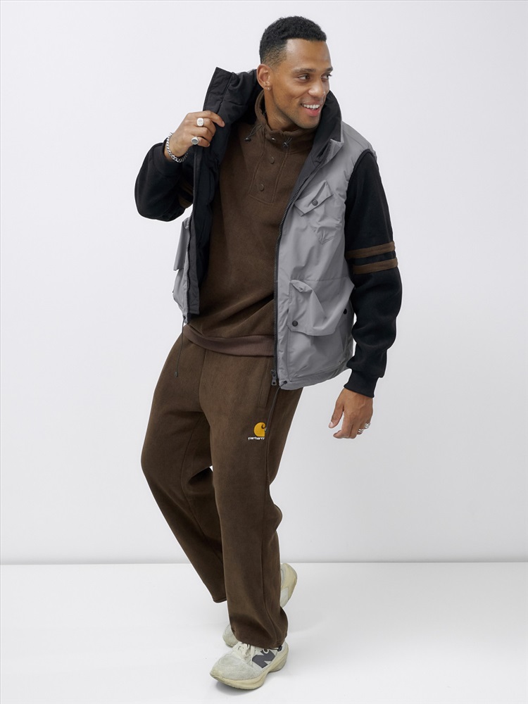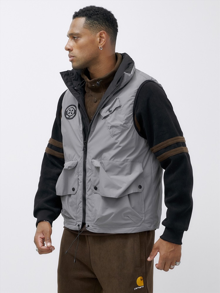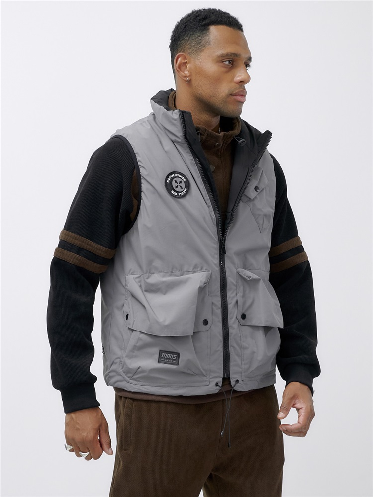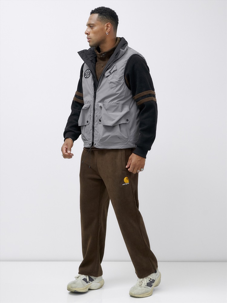 Жилет мужской утепленный спортивный серого цвета 15323Sr
