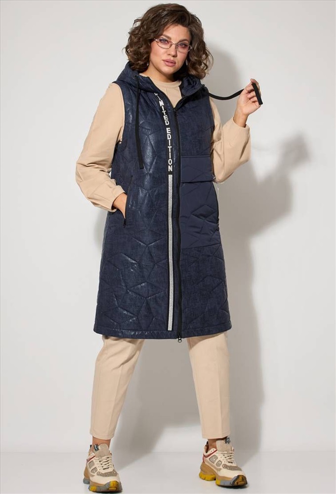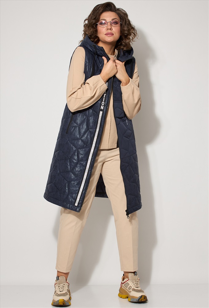 Стильный удлиненный жилет демисезонный — дополнение любого образа. Жилет больших размеров скроет лишние недостатки, вытягивает и стройнит. Безрукавка выполнена из стеганой курточной ткани с капюшоном и карманами на молнии, длина миди, слегка расширена к низу. В качестве декора тесьма с дизайном. Застежка на молнию с двумя бегунками.