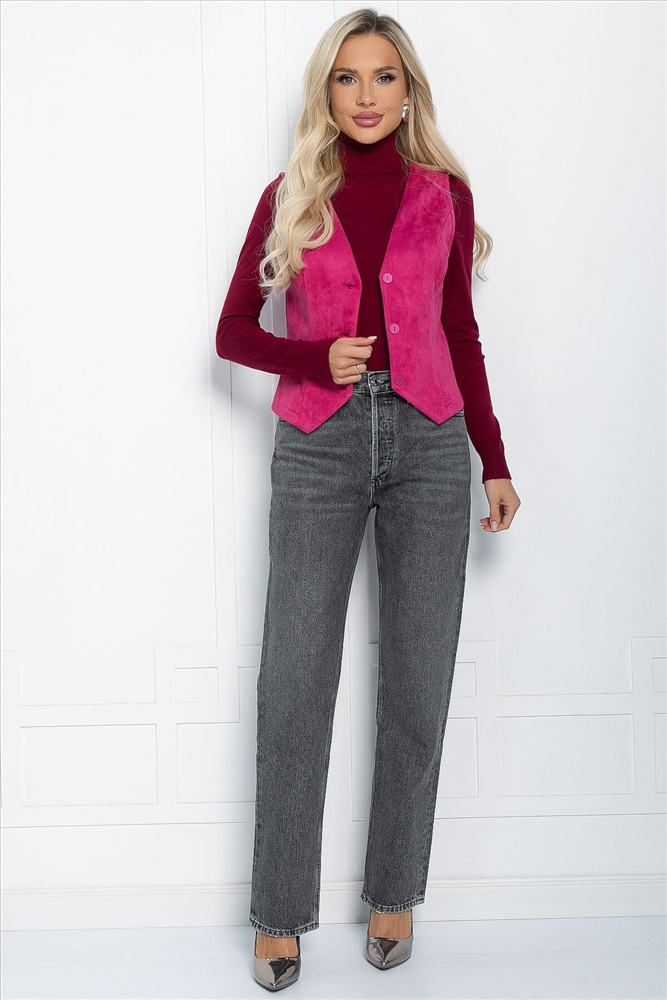 Классический яркий жилет на пуговицах из эко-замши - это воплощение эстетичности! Благодаря своей форме, она подчеркивает фигуру и придает образу элегантность. Однотонный дизайн позволяет подобрать большое количество образов с юбками, брюками, классическими шортами. Идеально подходит для официальных деловых мероприятий и встреч.