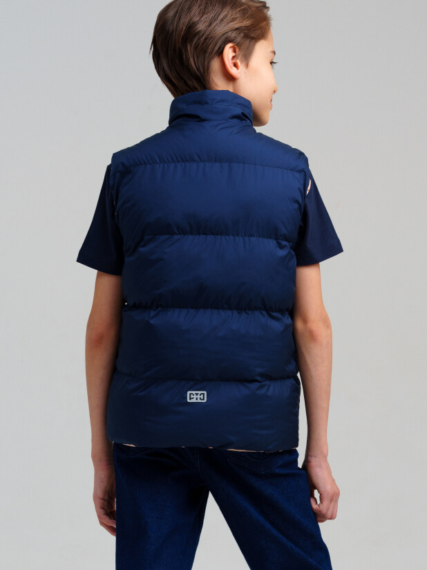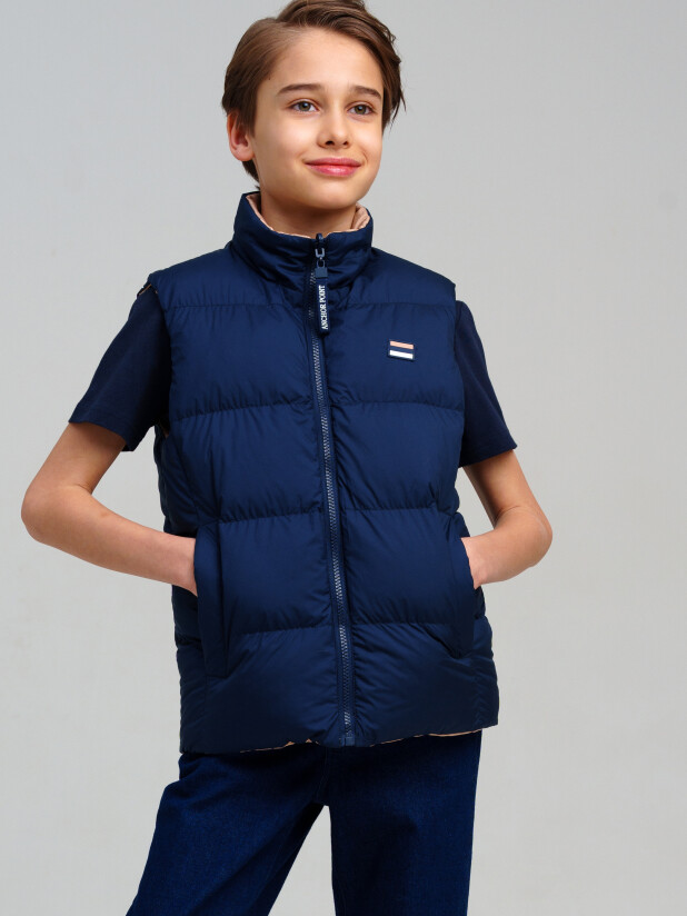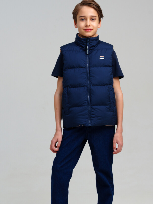 Легкая демисезонная двухсторонняя жилетка для мальчика подростка. Температурный режим до 10°С*. Линия X-LIGHT - вариант для теплой весны и ранней осени. Модная подростковая жилетка с ветрозащитным и водоотталкивающим покрытием. Гладкая подкладка максимально комфортна для надевания изделия. Два боковых кармана на молнии. Светоотражающие элементы. Жилетка (осень) будет актуальна для повседневных прогулок.