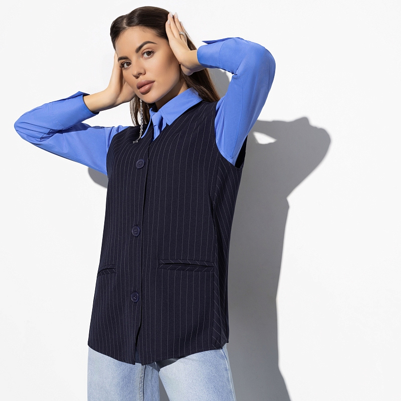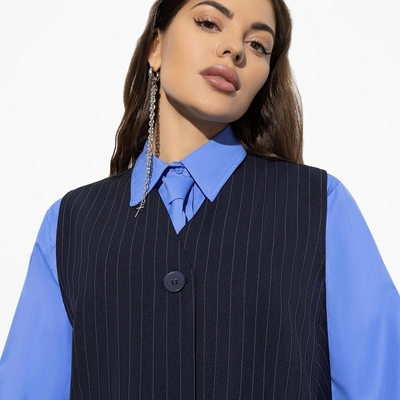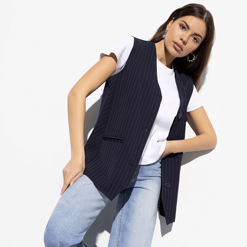 Шутки в сторону. Сейчас о серьезном. А именно об элегантном жилете в тонкую полоску. Нам есть, что сказать. Во-первых, это красиво. Во-вторых, крайне актуально. В-третьих, торопитесь, они быстро заканчиваются.