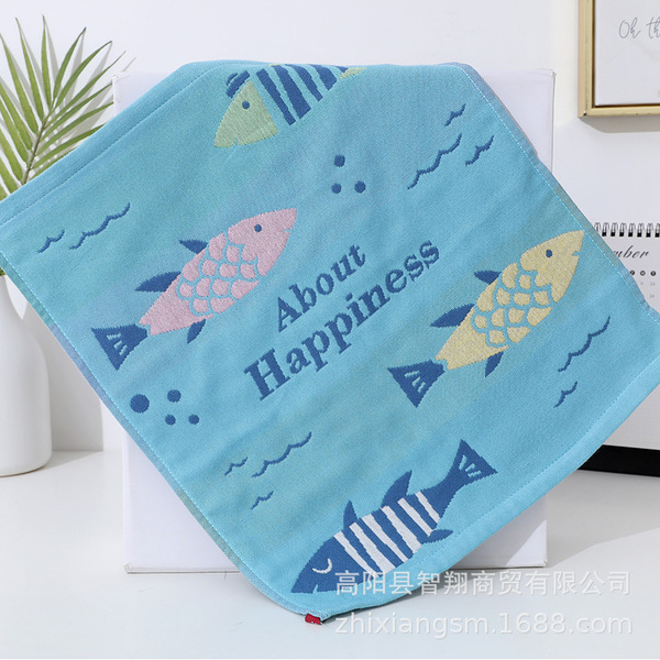 Zhiyang towel New Happy Fish Gauze Square Scarf Korea Soft absorbent kitchen hand towel factory price wholesale