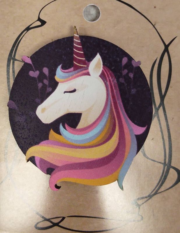 ЗН0053 Стильный деревянный значок "Единорог с розовым рогом"