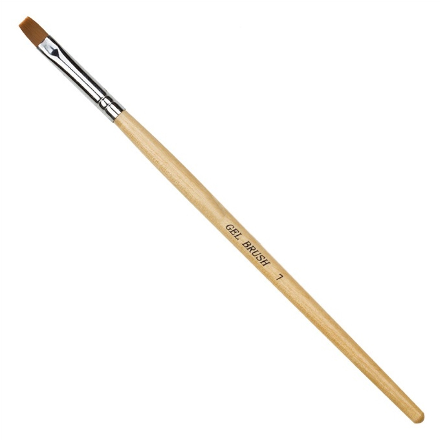 Простая и легкая кисть для гелевого моделирования состоит из гладкого деревянного корпуса и зафиксированного упругого нейлонового волокна. Плотные мягкие волоски плотно набиты в плоский пучок с округлым краем, которым удобно работать с материалом в зоне кутикулы и боковых валиков. Отсутствие ярко-выраженных краев позволяет нанести гель для моделирования ногтей максимально близко к коже, при этом полностью контролируя количество наносимого материала. Деревянная ручка кисти имеет гладкую текстуру и сбалансированный вес, благодаря чему часть нагрузки снимается с руки мастера во время длительной работы. Шелковистая текстура нейлонового ворса способствует простому и быстрому очищению инструмента после моделирования ногтей.