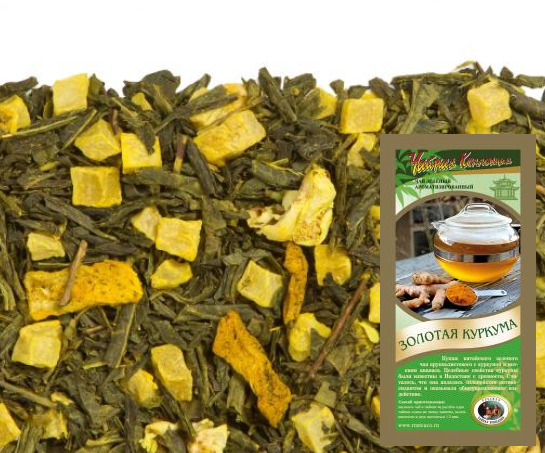 Золотой чай: Китайский зеленый чай крупнолистовой с куркумой и нотками ананаса. Поистине уникальный чай по вкусовым характеристикам и пользе для организма. Входящая в состав куркума оказывает иммуномодулирующее, общеукрепляющее воздействие. Это ароматный сладковатый напиток золотисто-зеленого цвета. Состав - чай зеленый рассыпной листовой крупный, кусочки ананаса (ананас, сахар, регулятор кислотности: лимонная кислота), натуральный ароматизатор, ананасовые чипсы, порошок куркумы, цветки чая. Комментарии к товару