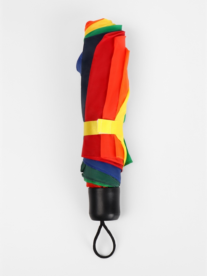 Складной зонт с механическим открытием и радужным дизайном станет отличным аксессуаром для защиты от дождя и добавит красок в повседневные прогулки. Купол из полиэстера раскрывается до 96 см в диаметре, обеспечивая надёжную защиту от осадков и ветра. Надёжная металлическая рама с восемью спицами поддерживает форму зонта и помогает выдерживать порывы ветра, сохраняя комфорт во время использования. Компактный трёхсложный механизм делает зонт удобным для переноски — он легко помещается в сумку или рюкзак. Пластиковая круглая ручка обеспечивает удобный хват, а разнообразие ярких цветов радуги поднимает настроение в хмурую погоду. Модель подходит для девушек и женщин, которые ценят практичность и стиль в одном аксессуаре.