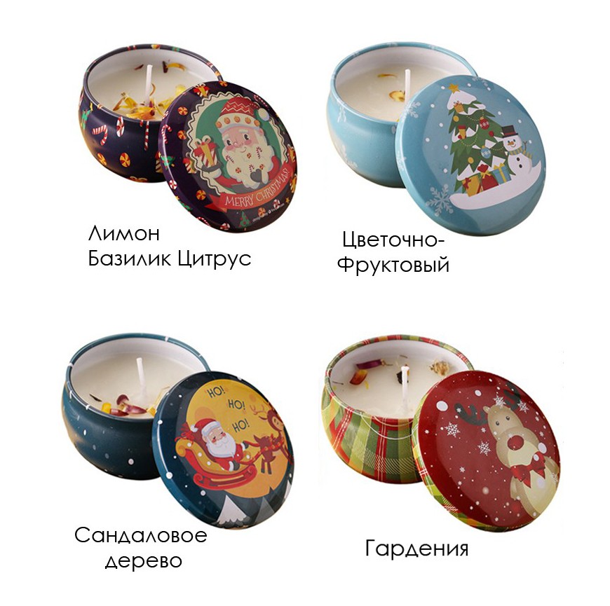 Вид : Цветочно-фруктовый (Снеговик на голубом фоне), Гардения (Олень и снежинки), Лимон Базилик Цитрус (Merry Christmas)