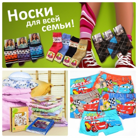Предлагаю семейную закупку бюджетных носков - мужские, женские, детские носки, колготки. Товар выкупаем упаковками (в описании товара написано, какое количество в упаковке). Склад поставщика огромный, можно выбрать и заказать любой товар с сайта поставщика по каталогу- но только упаковку. Производство Россия, ближнее Зарубежье, Китай.