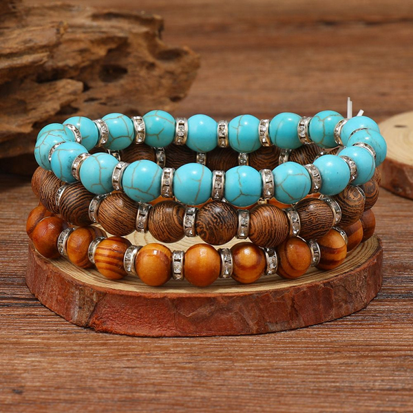 BSN067 Набор из 3 браслетов (бирюза и дерево), 8мм 2 фото