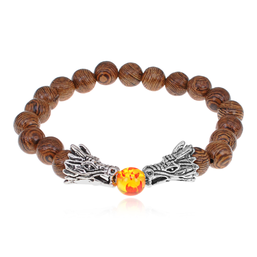 BJBS-429 Деревянный браслет Два дракона, 8мм 2 фото