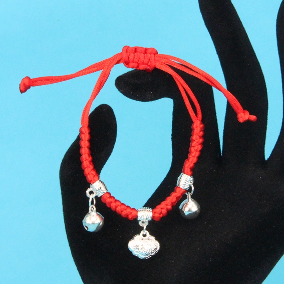 BS221 Браслет из красной нити Колокольчики и Замок Долголетия