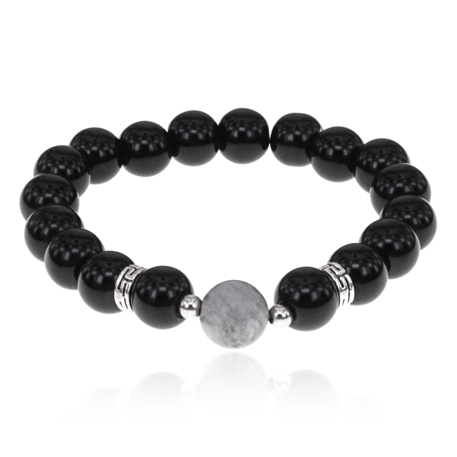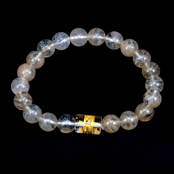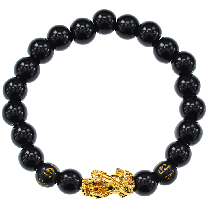 BS045-10 Браслет Пи Яо с мантрой 10мм, стекло, металл, цвет чёрный