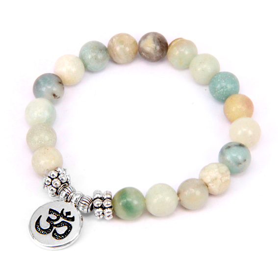 BJBS-159-1 Браслет Ом, амазонит 8мм