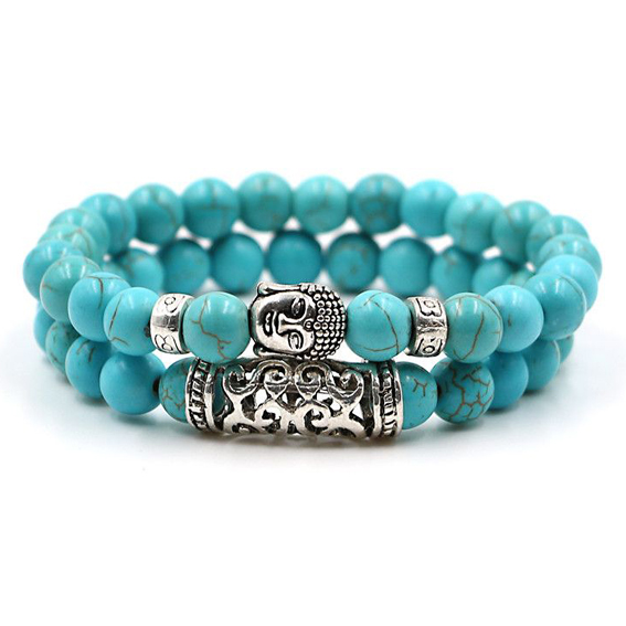 BJBS-114 Двойной браслет Будда из камня Бирюза (синт.) 8мм