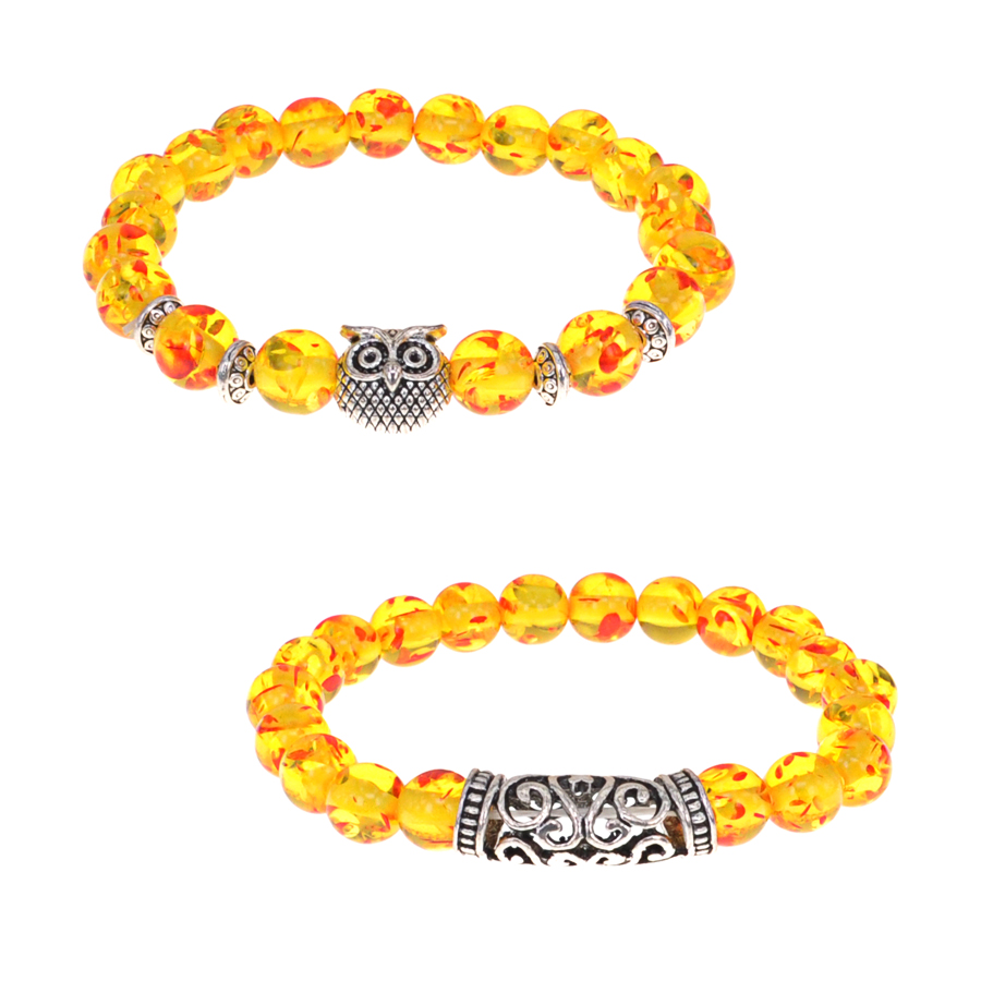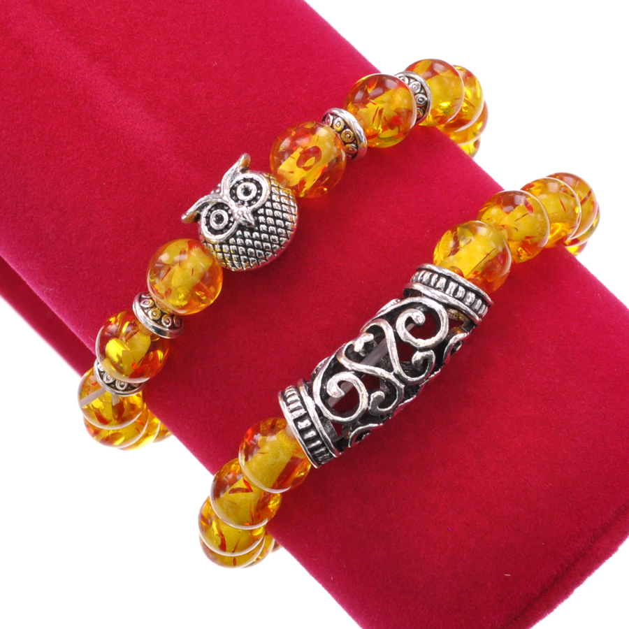 BJBS-424 Парные браслеты Сова, янтарь, 8мм 2 фото