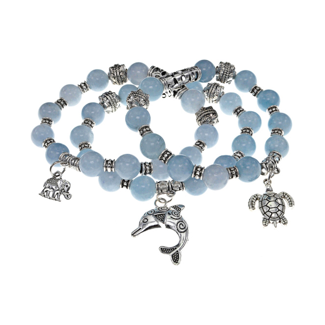 BJBS-236 Браслет из натурального камня Аквамарин, подвески в ассорт.
